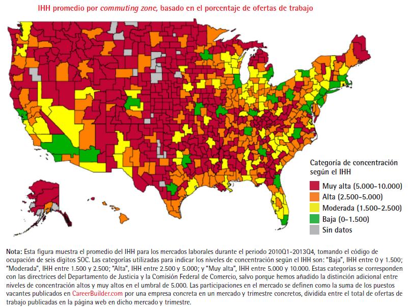 Para elaborar su artículo, los autores utilizaron datos de CareerBuilder.com que abarcan desde principios de 2009 hasta finales de 2012 e hicieron sus propios cálculos sobre la concentración de empleadores en más de 8.000 mercados laborales de Estados Unidos.