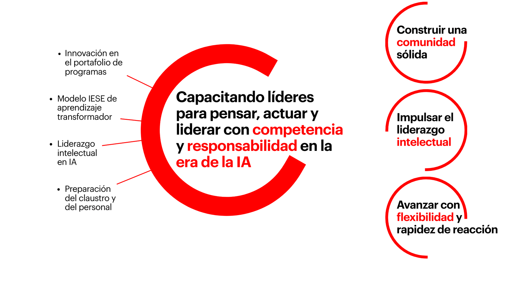 El mundo está evolucionando a una velocidad sin precedentes. Este momento exige una mayor claridad de propósito en la forma de formar a los líderes. El IESE está bien posicionado para convertirse en la mejor escuela de dirección que capacita a los líderes para pensar, actuar y liderar con destreza y responsabilidad en la era de la IA.