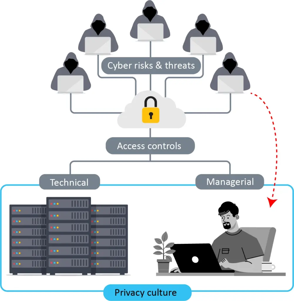 A company’s privacy culture refers to the collective values, beliefs and practices that are deeply embedded in its operations and which guide how data management and the protection of personal information are approached and prioritized. It encompasses the attitudes and behaviors of employees at all levels of the company, emphasizing the importance of safeguarding privacy and personal data. It requires being proactive about upholding privacy standards, with company-wide training and a shared commitment to ensuring that data protection principles are integrated into all operations, decision-making processes and strategic objectives. That is why, in the graphic, privacy culture covers both the technical and managerial sides of a company’s security controls.