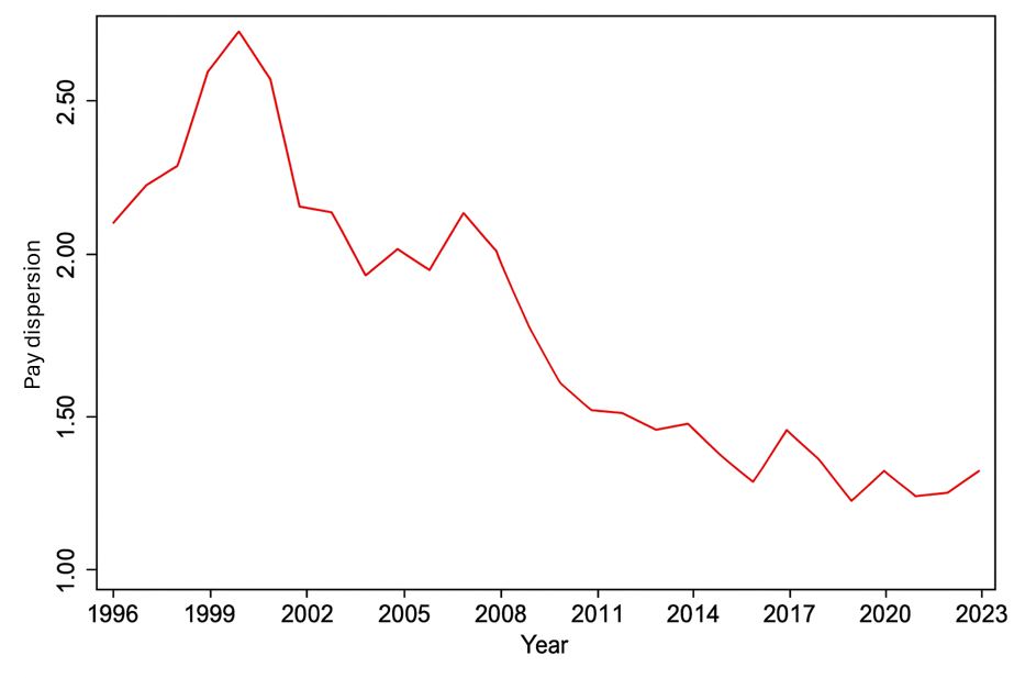 Drawing on a wide sample of U.S. firms, research shows that since 2006, 24% of the variation in CEO pay structures — spanning salaries, bonuses, stock awards and other components — has disappeared. A separate study that I coauthored finds a 40% decline in the dispersion of CEO pay levels over the past two decades. These patterns hold across industries, firm sizes and profitability levels, suggesting a widespread shift in how companies design executive pay packages.