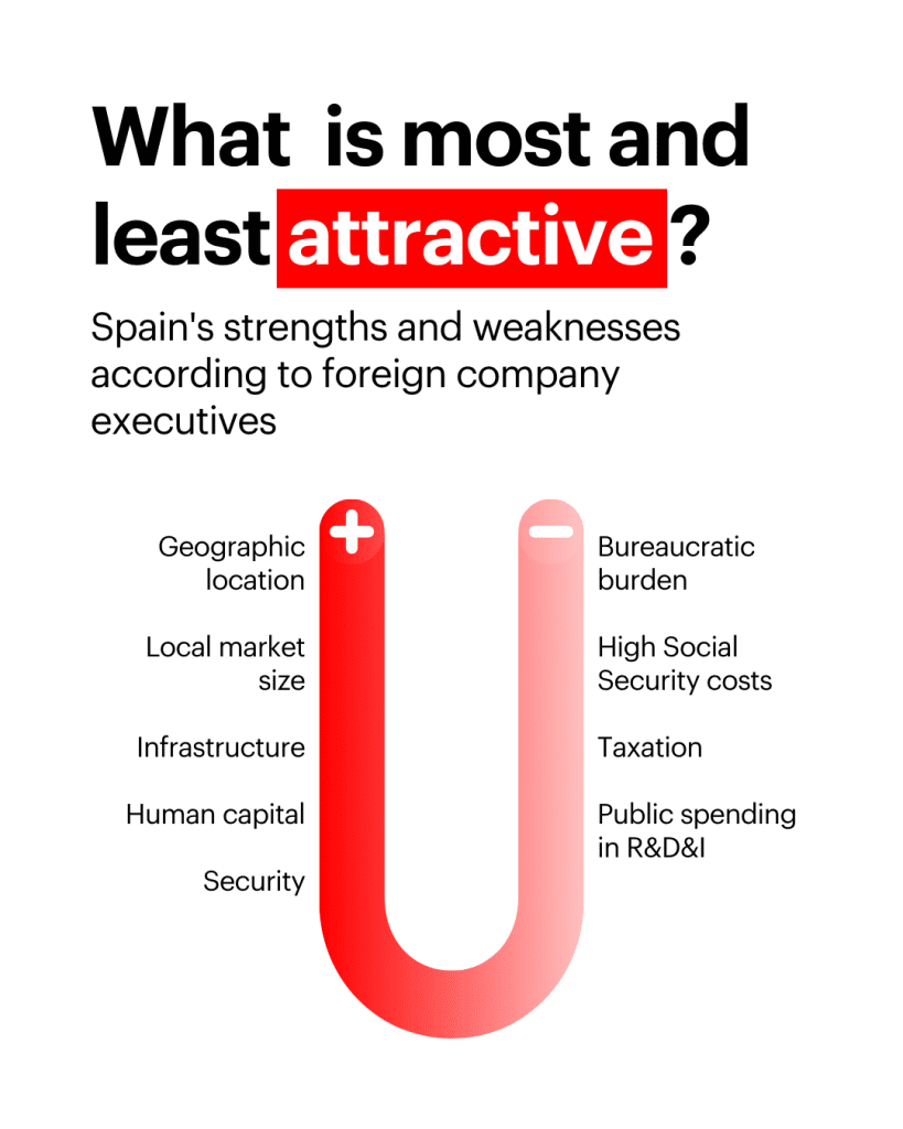 Foreign-owned companies in Spain value the country’s skilled workforce and high-quality infrastructure but highlight the need for improvements in bureaucracy, taxation and social security costs.