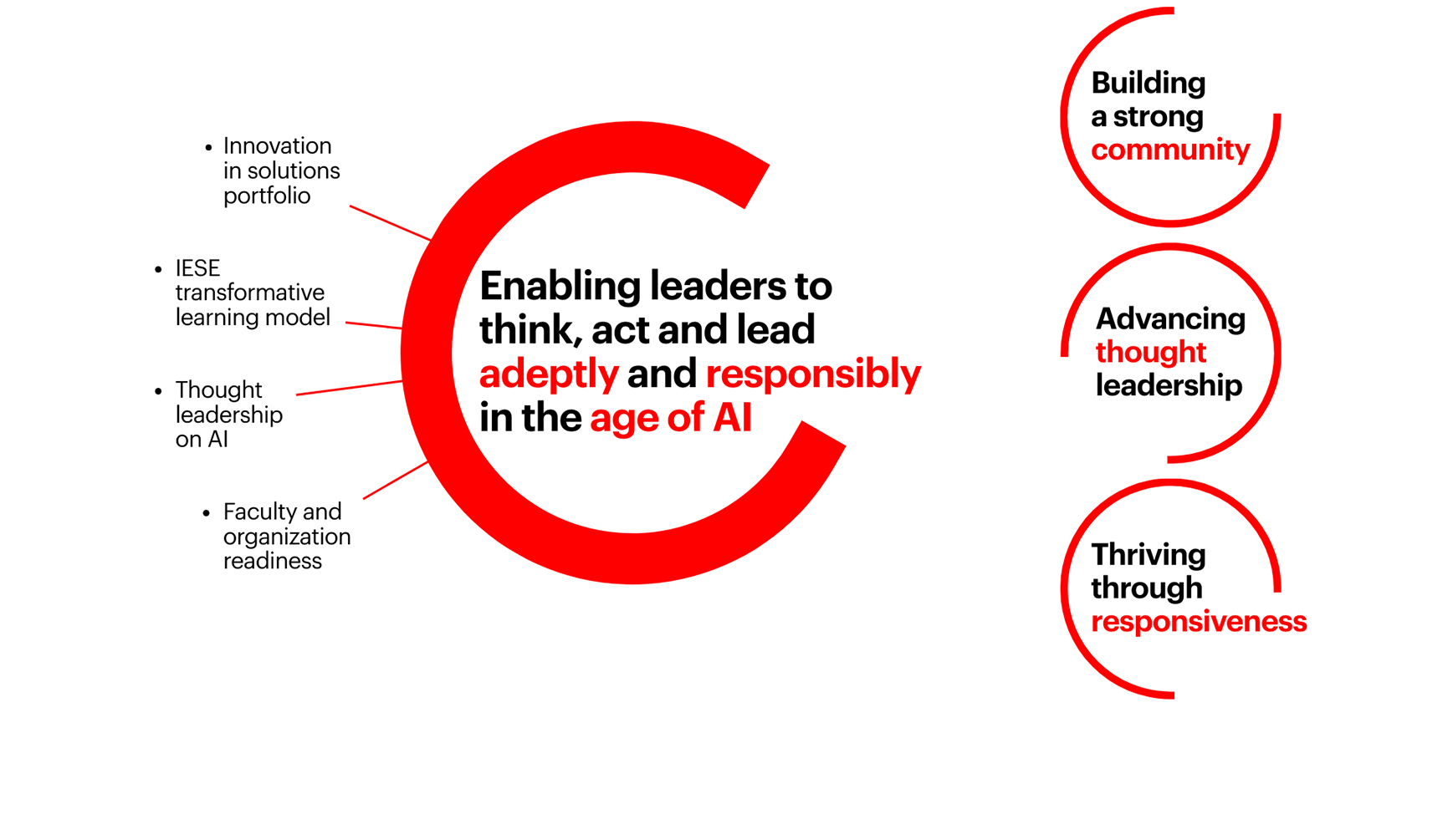 The world is evolving at an unprecedented speed. This moment calls for greater clarity of purpose in how leaders are developed. IESE is well positioned to become the top business school for enabling leaders to think, act and lead adeptly and responsibly in the age of AI.